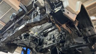 ラシーンはミッションを交換する際エンジン、トランスファを一緒に丸ごと車両から切り離す必要があるため少し大変ですがその分ミッションとエンジンの付け根にあるオイルシールなどの交換などこの時にしかできない作業もまとめて行います。