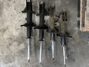今回はラシーンの走行中異音がするので診てほしいとの事で県外からお越しいただきました。 お客様と一緒に試運転をしながら音の確認をすると前側のショックアブソーバーがスカスカでそれによって段差でゴトゴト音が出ておりました。 加 […]